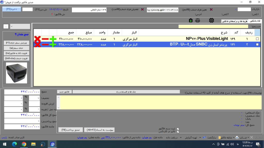 - چاپ فاکتور: امکان چاپ فاکتور با قالب استاندارد و رسمی، هماهنگ با چاپگرهای فروشگاهی، فیش پرینتر (حرارتی) و چاپگرهای معمولی A4.